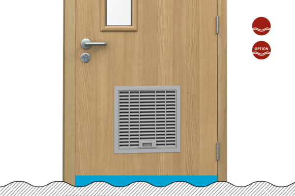 These options help ensure a continuous seal even where floor level varies across the threshold – providing containment for acoustic, smoke, air, and light transmission.