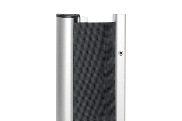 The tensioned roller mechanism maintains constant tension, creating a protective barrier between the door leaf and frame as the door opens and closes. The aluminium housing features adjustable fixing positions for accurate alignment during installation. The hard-wearing synthetic fibre is fire retarded